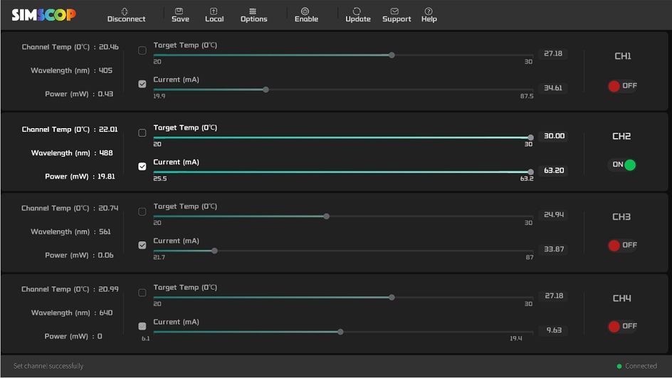 Four-channel Single-mode /Multi-mode laser(405-640 nm)