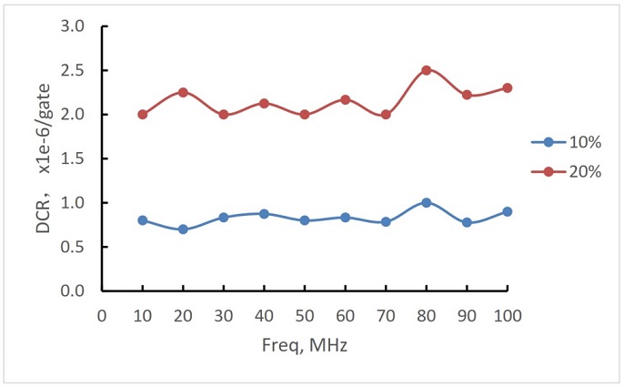 DCR vs Gate Frequency (SPDE=10%, 20% @1550nm)
