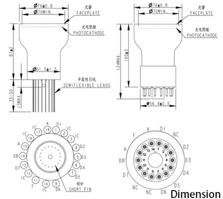 Spectral Range:290-650 nm ; Peak QE:380 nm ;Gain:Typ:5*10^5(@25℃) ; Dark Current:Typ:0.1(@25℃) /Max:10(@25℃)/Max:1000(@175℃)nA