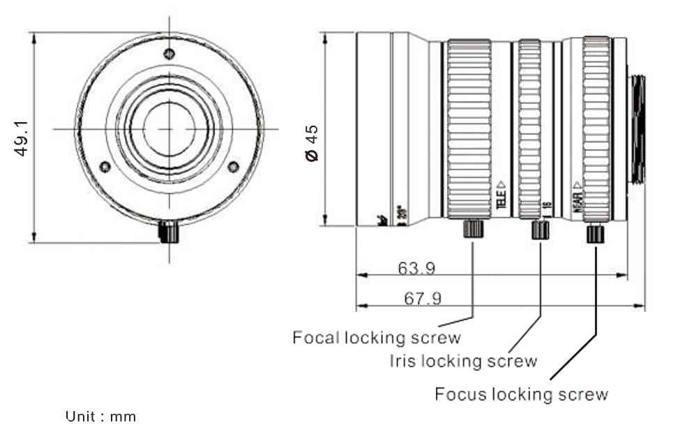 STPM-1236MC5M Resolution 5 MP;160lpmm (center)125lp/mm (corner),Focal Length 12-36 mm,lris Range F2.8-F16,Max.Sensor Size 2/3"(8.8mmX6.6mm Ø11mm)