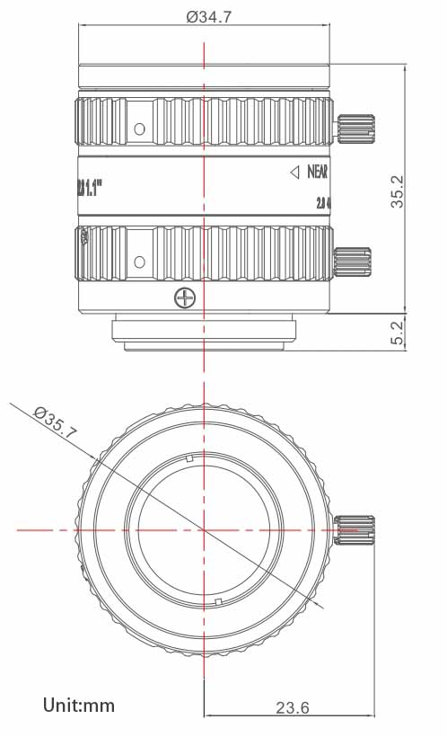 STPM-35UC20M-H,Sensor Size 1.1"(17.6mm),Focal Range 35 mm,Wavelength 420-1000nm,lris Range F2.8-F22,Back Focal Length (in Air) 12.9 mm