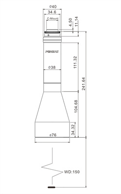 STPMS-05HT150-C,High Resolution Telecentric Lens 0.5X, Max. sensor size 2/3",Resolution 12.43 μm,Working Distance 150 mm