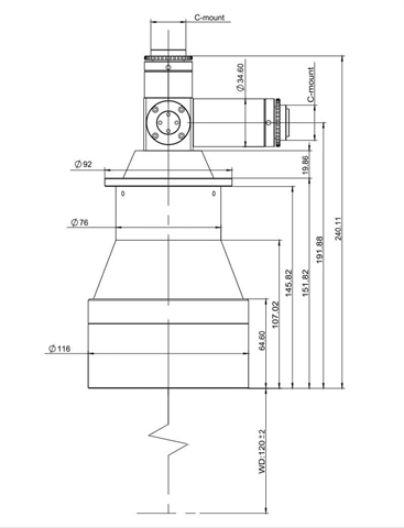 STPMS-DTC-0088/0176-120,Double Magnification Bi-Telecentric Lens0.088X & 0.176X, Max. sensor size 1/1.8'' & 2/3'',Resolution 30.5 μm,Working Distance 120 mm