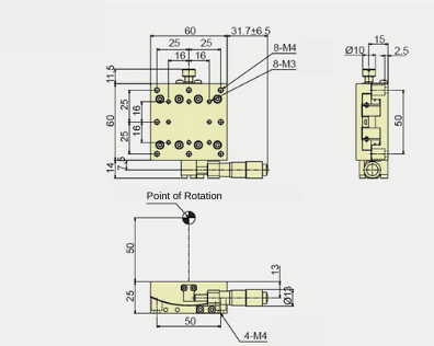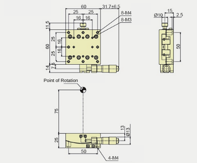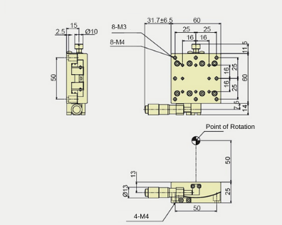 Goniometer, Horizontal Axis of Rotation, 50mm Distance to Point of Rotation, ±4.5º, Right Side Drive
