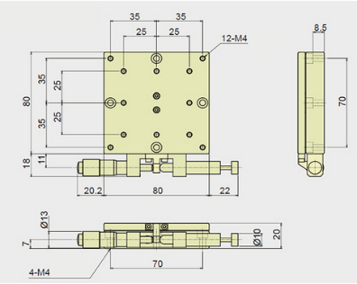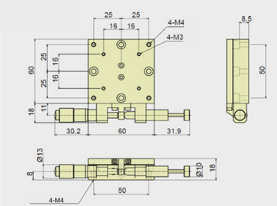 Top: M4, M3 Bottom:Counterbore holes for M4 Cap screws