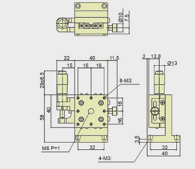 Crossed Roller Guide | 13 | 40x40 | Platform: M6,M3 Base: Counterbore for M3 Cap Screws | Center | 9.8 |