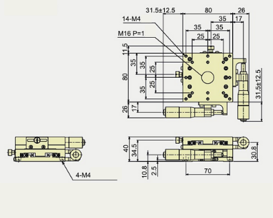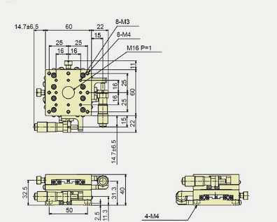 25mm Crossed Roller Bearing XY Linear Stage, Platforms dimensions=80mmx80mm, Right Side Drive
