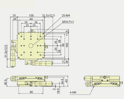 25mm Crossed Roller Bearing XY Linear Stage, Platforms dimensions=100mmx100mm, Left Side Drive