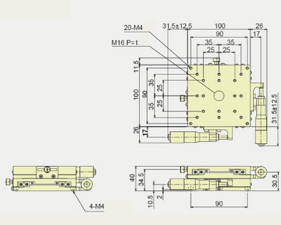 25mm Crossed Roller Bearing XY Linear Stage, Platforms dimensions=100mmx100mm, Center Drive