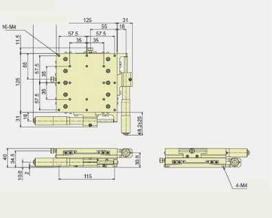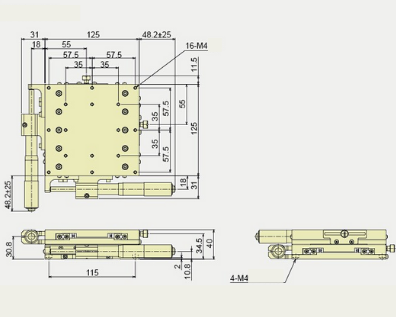 25mm Crossed Roller Bearing XY Linear Stage, Platforms dimensions=125mmx125mm, Right Side Drive