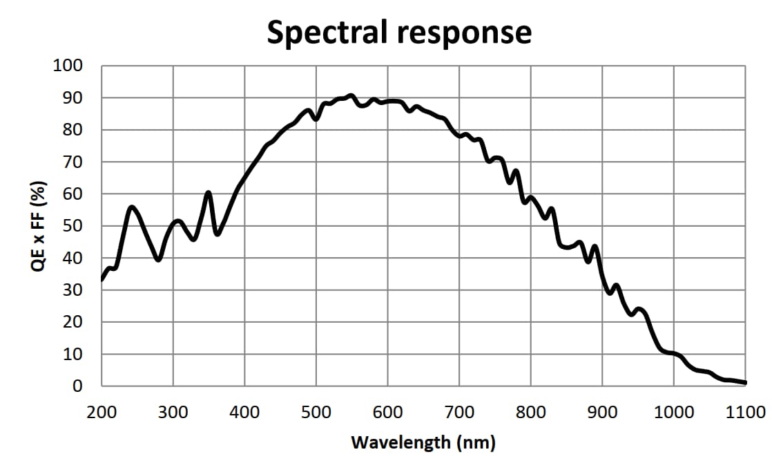 Resolution: 800 (H) x 600 (V) ,Pixel size: 16 um x 16 um ,Sensitive area: 12.8mm x 9.6mm ,Dynamic range: 90 dB ,Data bit depth: 12bit&16bit ,Quantum efficiency: 90.7%@550nm(peak) ,Data interface: USB 3.1 Gen1, Optical interface: C-mount