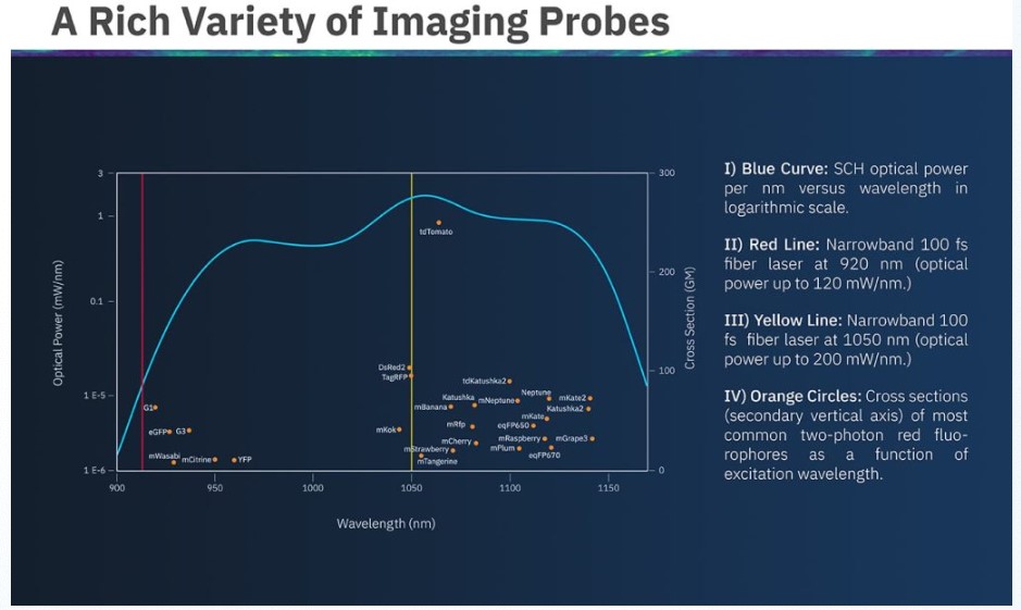 Imagine simultaneously imaging a wide range of fluorophores without having to think about selecting the optimum excitation wavelength of your laser. In two-photon microscopy, this is often a complex and sometimes an impossible task when using traditional 100fs excitation lasers.