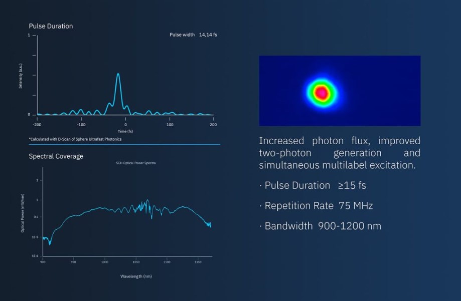 To simultaneously excite a larger variety of fluorophores with a single laser, lasers with broader bandwidths and shorter pulse durations are required.