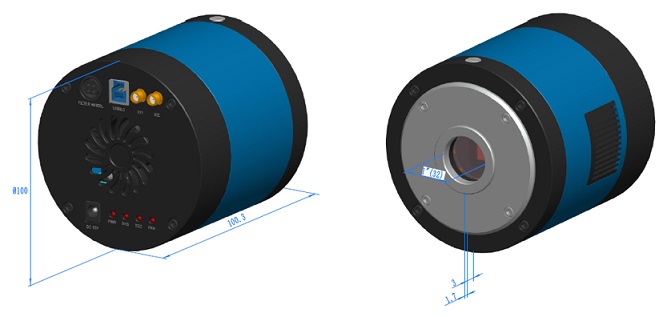 Microscope TE-Cooling USB3.0 CCD Camera, Sensor 2.8Mega Pixel, color mode Polychromatic, FPS 15@1938x1460, Exposure 0.05ms~1h