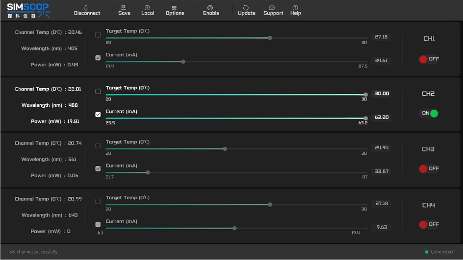 Four-channel Single-mode /Multi-mode laser(405-640 nm)