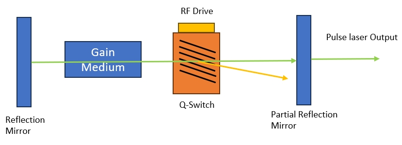 Q-Switches, wavelength 1064nm, active aperture 4.0mm, center frequency 27.12MHz, loss modulation >85%, Fused Silica, water-cooled, provide AOM-matched RF driver