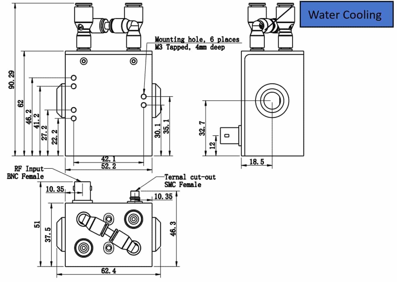 Q-Switches, wavelength 1064nm, active aperture 6.0mm, center frequency 27.12MHz, loss modulation >85%, Fused Silica, water-cooled, provide AOM-matched RF driver