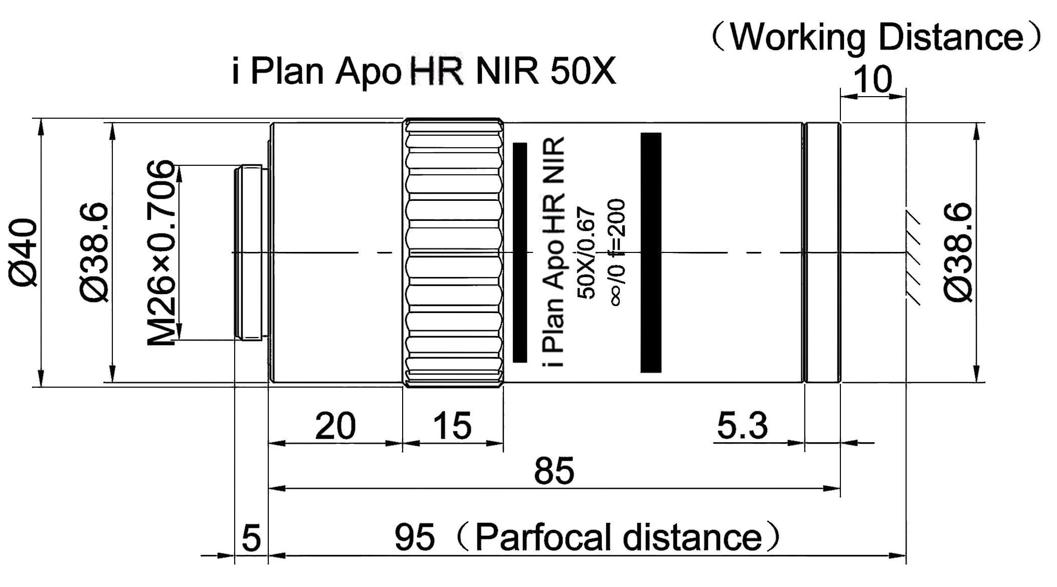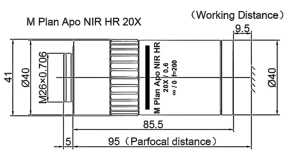M Plan Apo NIR / M Plan Apo NIR HR(Plan Apochromatic Objective NIR/ Plan Apochromatic Objective High Resolution NIR) are long working distance objectives with an infinite conjugate parfocal distance of 95mm.These objectives can be used for 532nm, 1030~1064nm laser processing.