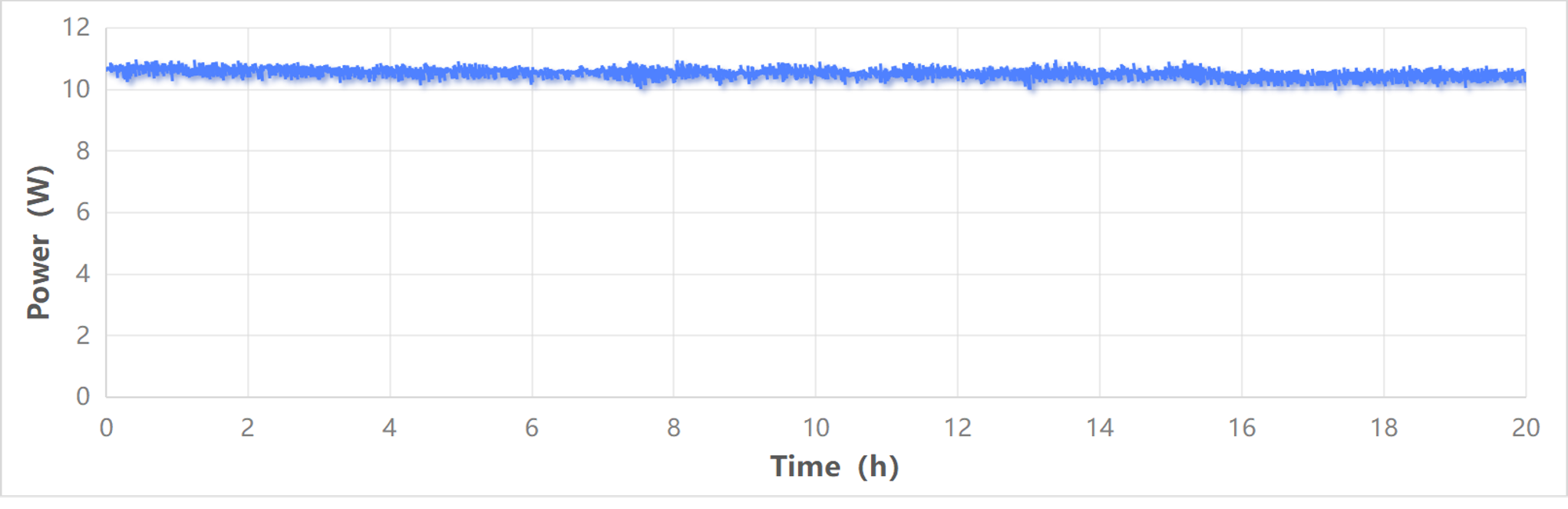 Power stability, STHO-10W-HE 400uJ, 25kHz, 20 hours, RMS=0.46%