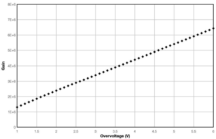 Spectral range:300-950nm;peak wavelength:420nm;dark voltage:2mV;active area:3*3mm;microcell size:50μm; PDE:47%;No. of microcells:2668;Gain:6*10^6