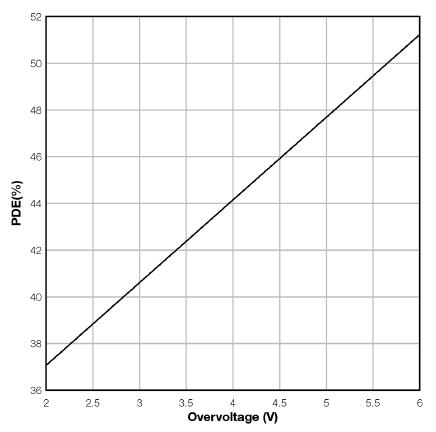 Spectral range:300-950nm;peak wavelength:420nm;dark voltage:2mV;active area:3*3mm;microcell size:35μm; PDE:50%;No. of microcells:5676;Gain:6.3*10^6
