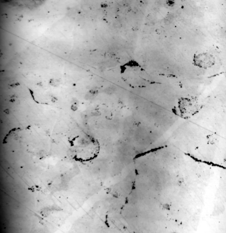 Wafer surface detection,20X Objectivediameter of defects 1.1μm、0.9 μm、0.9 μm、0.45 μm