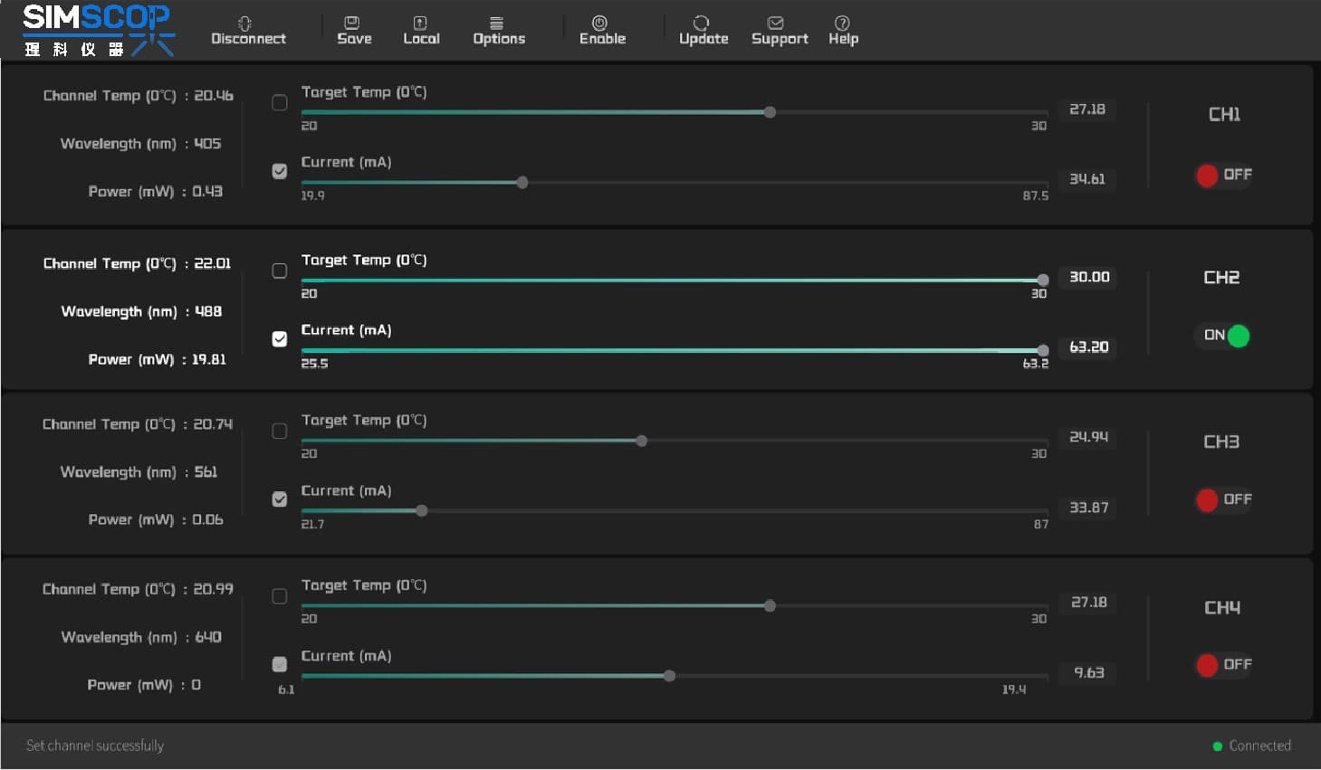 Four-channel Single-mode /Multi-mode laser(405-640 nm)