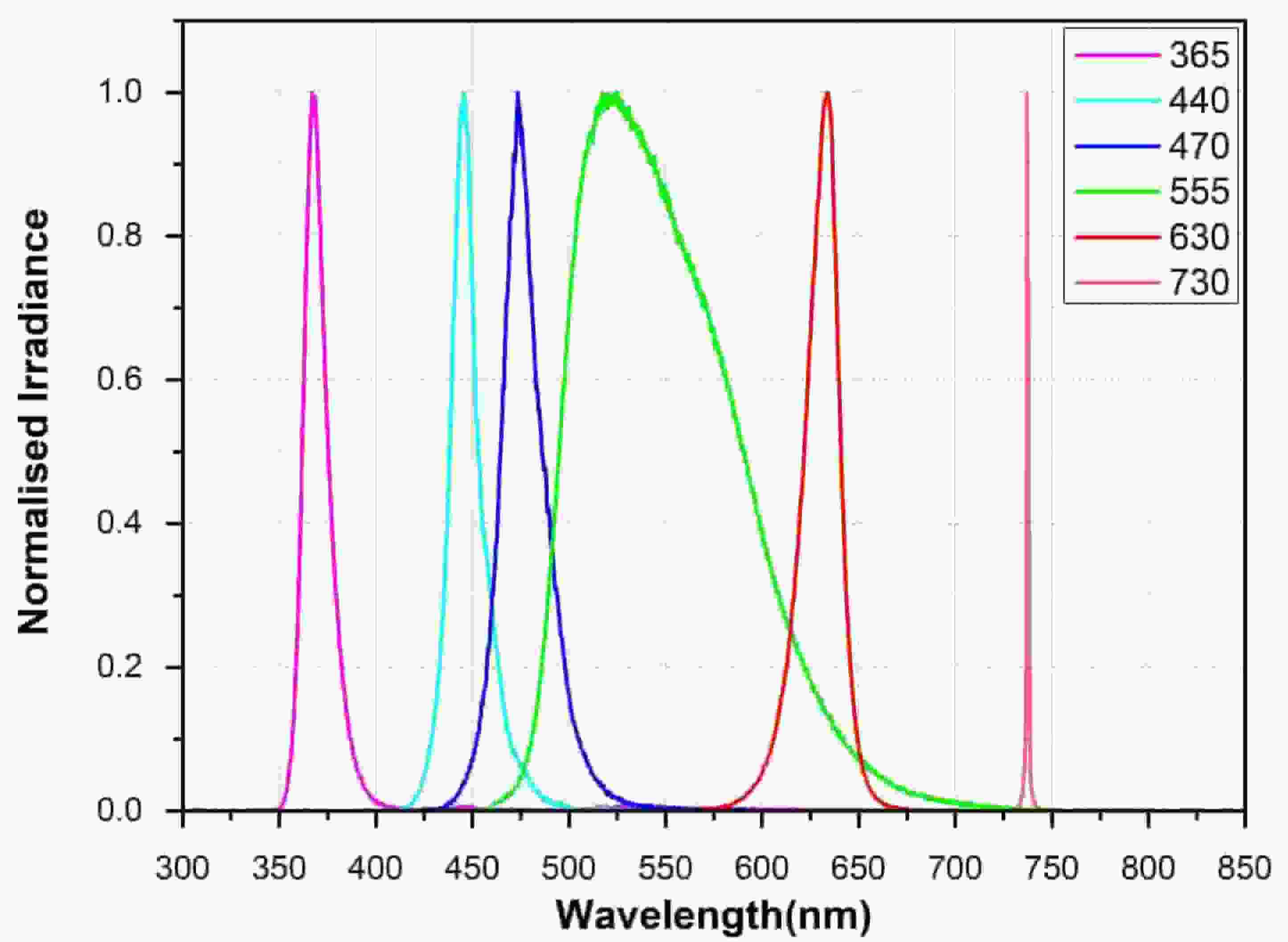Wavelength: 360-730 nm (360/385, 440, 470, 555, 630, 730 nm) ;Output Power: Multiple Wavelength Output ≥4.5W; Optical Transmission: 3 mm diameter LLG; Operating Mode: Continuous Output, Default TTL Modulation (Analog Modulation Optional)