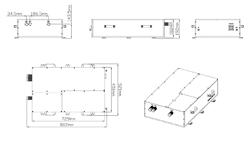 Dimensions 802×521×192 mm, 445×367×97 mm