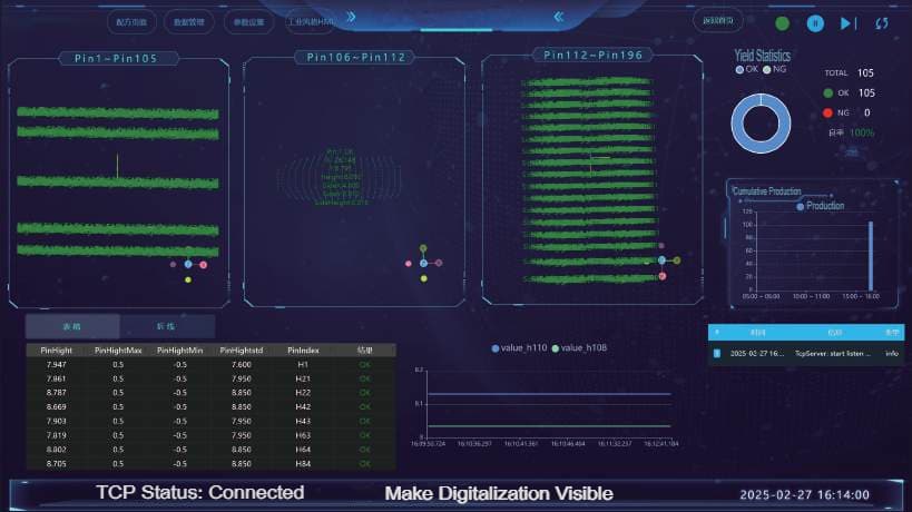 The special CMOS sensor adopting ROCC technology (Fast on-Chip computing) has an image processing capability of up to 15.4 billion pixels per second and can achieve a 3D scanning speed of 7,000 contours per second in full-frame mode. The maximum scanning speed can reach 64,000 contours per second.