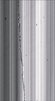 Grayscale image of silicon carbide wafers Measurement of scratch depth on silicon carbide wafers