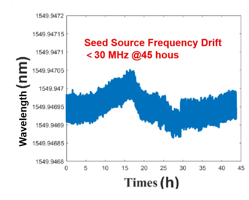 Center Wavelength: 765-795 nm (Customizable), Output Power: >500 mW (>1W optional) ,Output Laser Type: CW, Single Frequency, Single Longitudinal Mode Seed Source Linewidth@50km delay line: 1.5-2 kHz ,Power Stability: 1%-3% ,Output Fiber Type: Panda PM1550/ Free Space ,Size: 254*190*85 mm ,Weight: <5kg