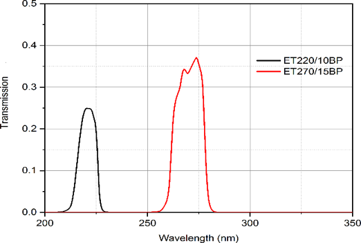 ET220/10BP, UV Narrow Bandpass Filter Center Wavelength 220 nm,Bandwidth 10 nm,Transmittance Tpeak >/= 22%