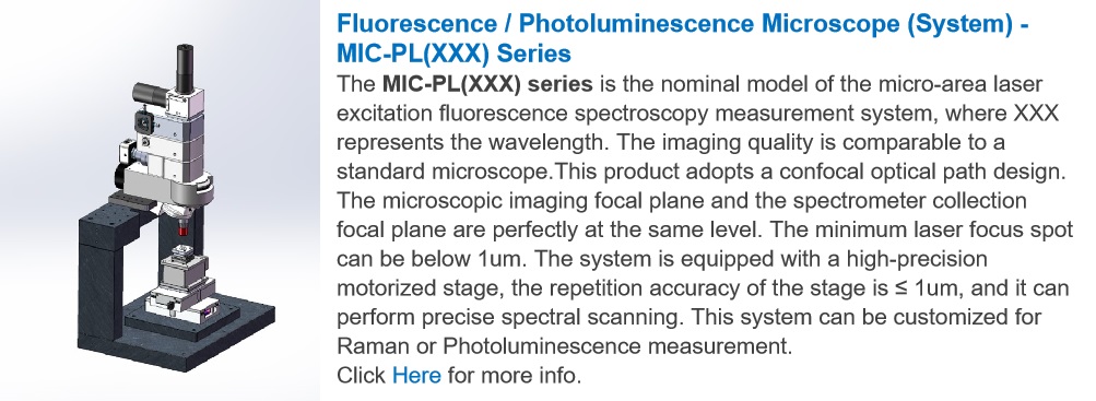Furthermore, we also have updated the self-developed Fluorescence / Photoluminescence Microscope (System), please refer more details below.