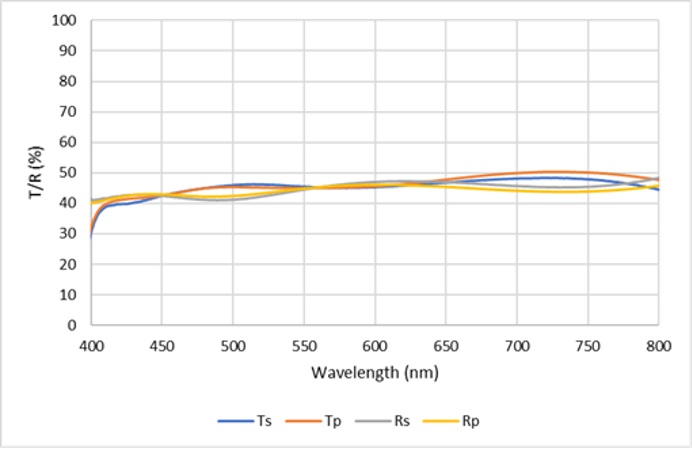 Non-Polarization Beams-plitter Coating (Tavg=Ravg= 45-50% @ 400-700nm) |