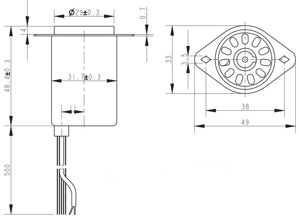 Photomultiplier Tube Accessories - High Voltage Tube Socket, Suitable Photomultiplier Tube Φ28mm End Window Type, Input Voltage ±15V, Input Current Max. VCC 85,VEE 20, -3dBbandwidth Typ. 8MHz, Gain Typ. 0.3V/μA(Load Impedance1 MΩ), Output Signal Bias Typ. 10mV, Output Signal Noise/Ripple Max. 10mV