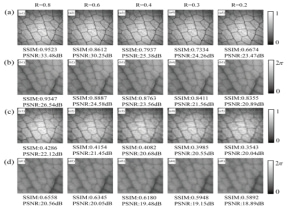 Three-step phase-shifting DCT-SPI and three-step SPI FSPI were used to measure the amplitude and phase of dragonfly wings at different sampling ratios.