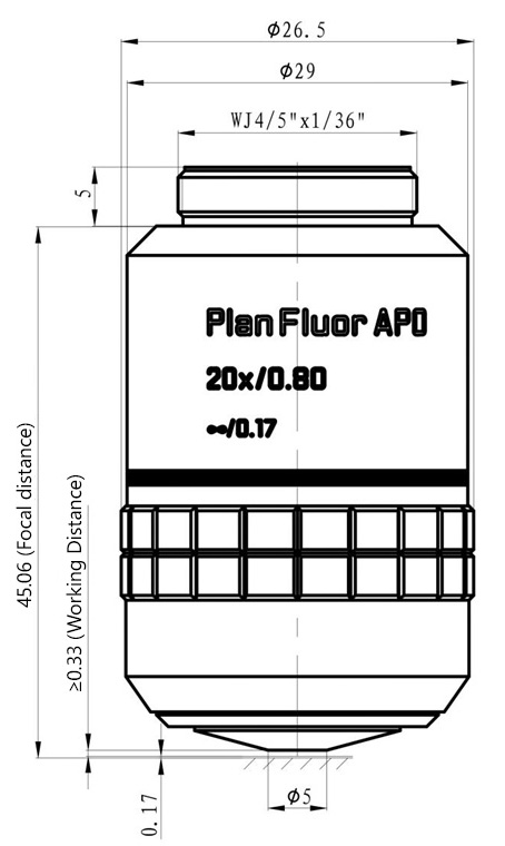 The resolution and depth of focus of the objectives are calculated based on a reference wavelength (λ=550nm)